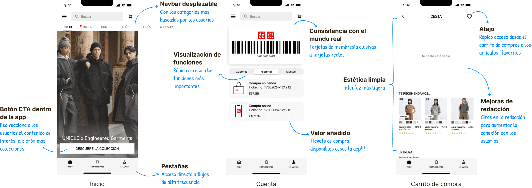 La versión de la aplicación de UNIQLO para España se ha actualizado desde entonces; sin embargo, los usuarios todavía piensan que hay trabajo por hacer en el ámbito de experiencia de usuario. Las nuevas versiones han tenido en cuenta la encontrabilidad de los productos y la consistencia entre esta app y versiones para otros países; se espera que pronto toda la experiencia se adapte por completo al público español.